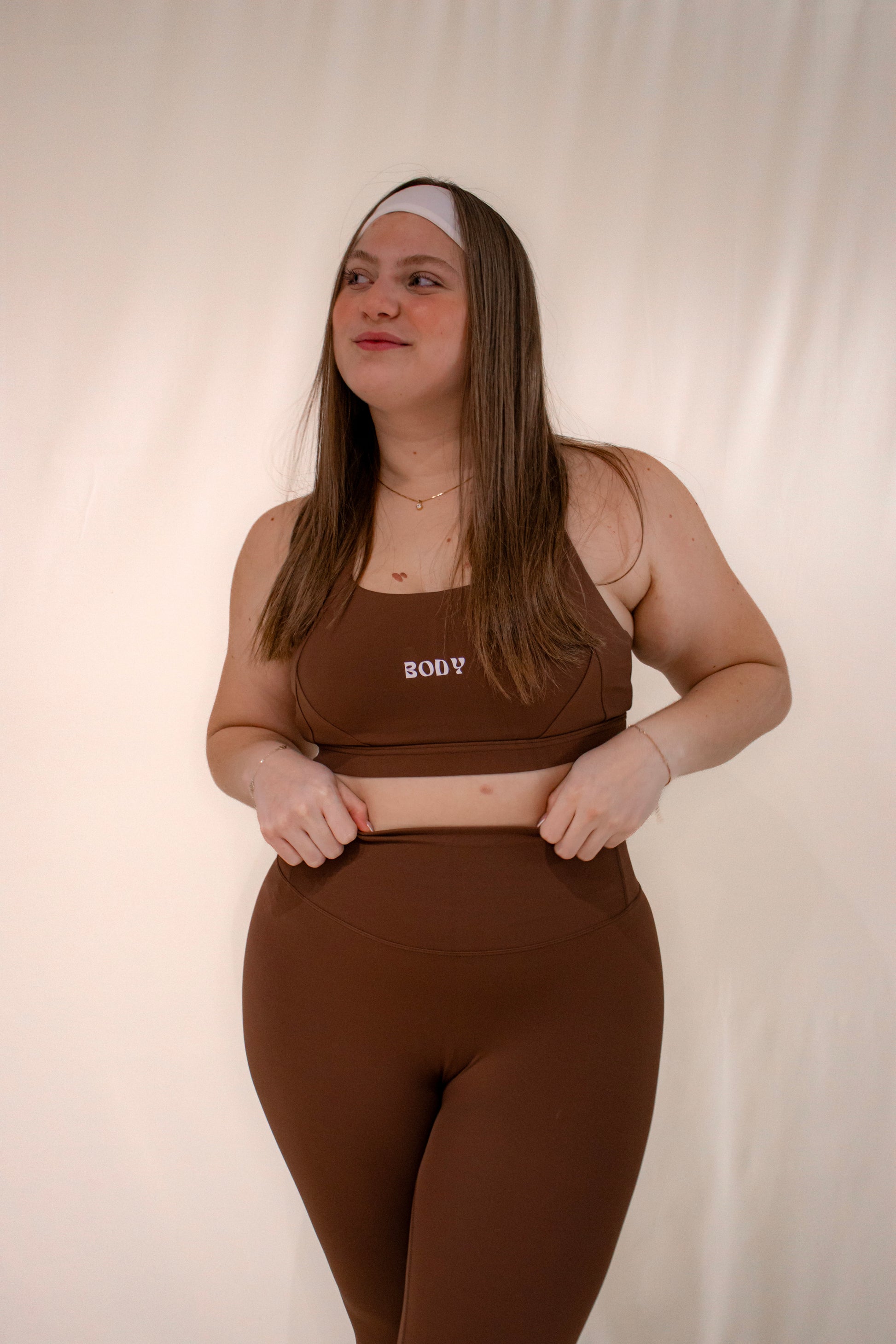 Feel confident and ready to move with this two-piece set: bra and leggings. The bra has a stylish crisscross design in the back.